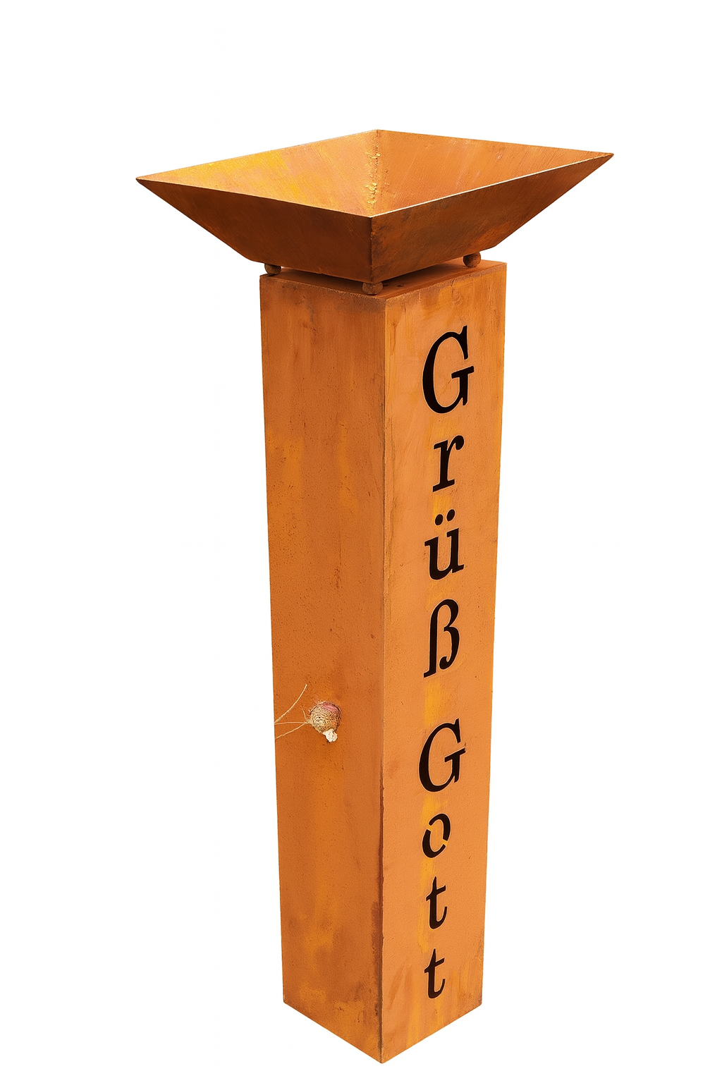 - Design: Rostsäule mit Schriftzug Grüß Gott