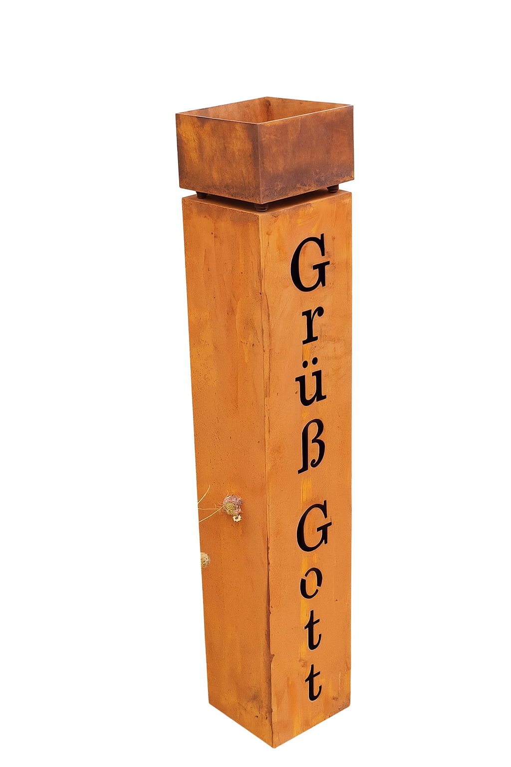 - Design: Rostsäule mit Schriftzug Grüß Gott