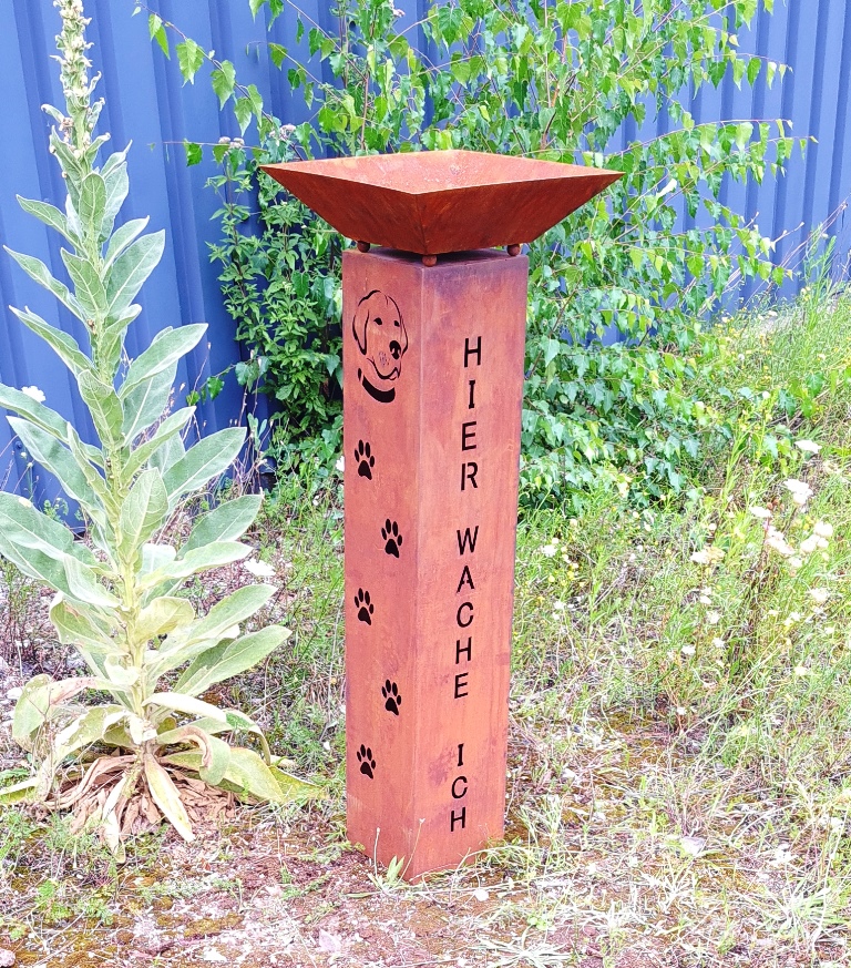 Edelrost Säule Hier wache ich ... mit Pfoten und Hundekopf