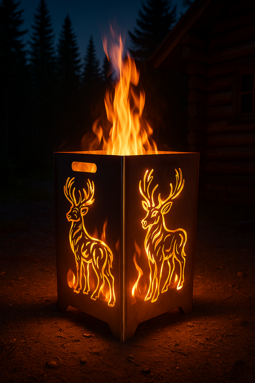 Feuerkorb mit Hirschfigur – Wo Feuer auf Wildnis trifft – der majestätische Hirsch-Feuerkorb für echte Naturmomente. |