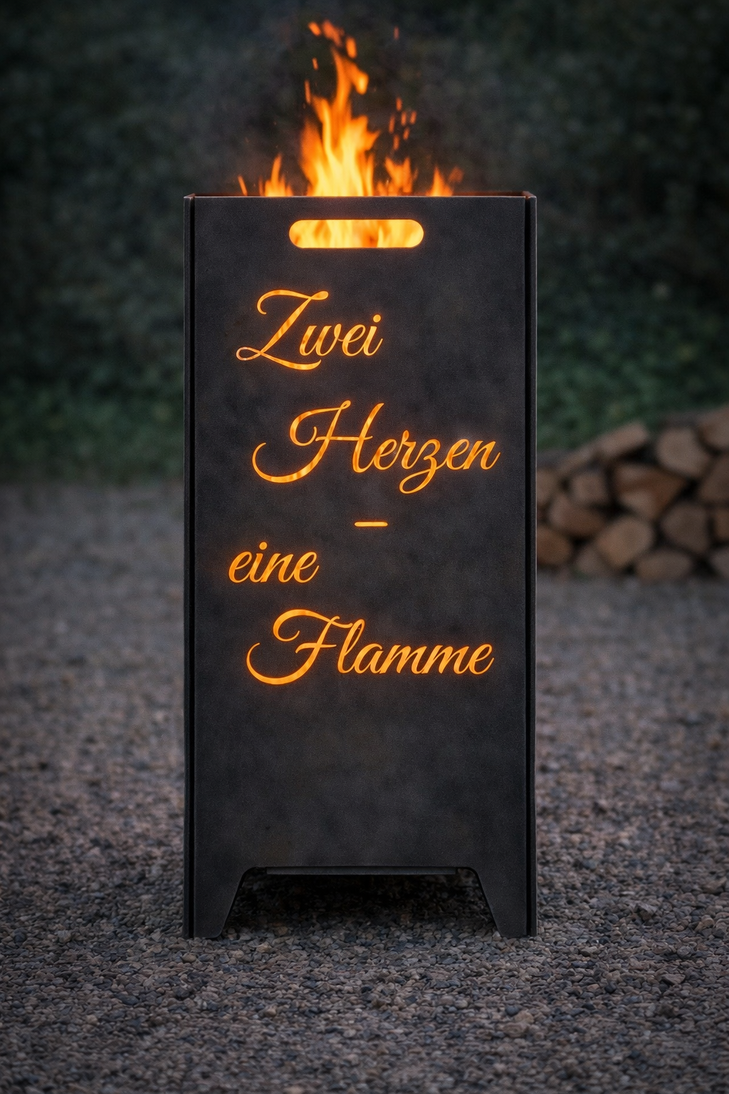 Feuerkorb „ Zwei Herzen. Eine Flamme. Eine Erinnerung fürs Leben." |