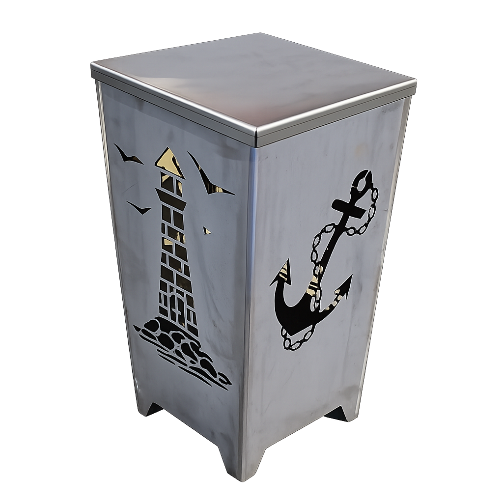 Feuerkorb - Maritimes Feuer für echte Küstenherzen – Leuchtturm, Segelboot & Sylt als Flammenspiel im Garten. Beschreibung Die hochwertigen, steckbaren Feuerkörbe vereinen maritimes Design mit funktionaler Handwerkskunst. Gefertigt aus robustem Stahl, lassen sich die Elemente dank praktischer Steckverbindungen schnell und werkzeuglos zusammenbauen. Die liebevoll ausgeschnittenen Motive – Leuchtturm, Segelboot und die Insel Sylt – erzeugen bei Dunkelheit wunderschöne Schattenspiele und schaffen ein einzigartiges Küstenflair im Garten, auf der Terrasse oder am Strand. Ob als dekorativer Hingucker, gemütliche Feuerstelle oder originelles Geschenk – diese Feuerkörbe sind ein echtes Highlight für alle Nordsee- und Meeresliebhaber. Ideal für Garten, Terrasse, Campingplatz oder Strandhaus – unsere Feuerkörbe mit maritime Motive bringen Wärme, Licht und Küstengefühl in Ihr Zuhause. Produktdaten Höhe: 50 cm Breite / Tiefe: ca. 37 × 37 cm Materialstärke: Feuerkorb & Rost: 3 mm Stahl Aschewanne: 2 mm Stahl Bauart: gesteckt Motive:Leuchtturm (alle 4 Seiten) Leuchtturm - Sylt (jeweils 2x Leuchtturm und 2x Sylt) Leuchtturm - Segelboot (jeweils 2x Segelboot und 2x Leuchtturm)Segelboot (alle 4 Seiten) Segelboot- Sylt (jeweils 2x Segelboot und 2x Sylt) Rand: leichter Bogen unten Hinweis: Weitere technische Details siehe Unterpunkte. Highlights Extrem robust: 3 mm starkes Stahlblech Form: Quadratisch, mit sanft geschwungenem Rand Steckbares Design mit maritimen Motiven Einfaches Stecksystem – alle Seiten sind miteinander verbunden Inklusive: Ascherost & Aschewanne Vielseitig: auch als Hocker oder Pflanzständer nutzbar Material & Pflege Aus unbehandeltem Stahl – entwickelt mit der Zeit eine natürliche Rostpatina Patina verleiht einen einzigartigen, authentischen Look Reinigung durch einfaches Entnehmen von Rost und Aschewanne Tipp vom Hersteller Die Aschewanne kann auch als Deckel genutzt werden – ideal als Abstellfläche für Pflanzschalen oder als Sitzfläche. So wird dein Feuerkorb zum echten Multitalent im Garten. Zubehör Grillplatte – perfekt für stimmungsvolle BBQ-Abende Weitere Zubehörteile findest du direkt in unserem Shop. Sicherheitshinweise Nur auf nicht brennbarem Untergrund betreiben Ausreichend Abstand zu brennbaren Materialien halten Es kann zu Funkenflug kommen Kinder nie unbeaufsichtigt in der Nähe lassen Heiße Asche nicht in Mülleimer oder ungeeignete Behälter füllen Lieferumfang 1 × Feuerkorb 1 × Ascherost 1 × Aschewanne Lieferhinweis Feuerkorb wird ungerostet geliefert Kratzer oder Schleifspuren aus der Herstellung sind normal Erste Rostansätze können vorhanden sein und sind kein Mangel