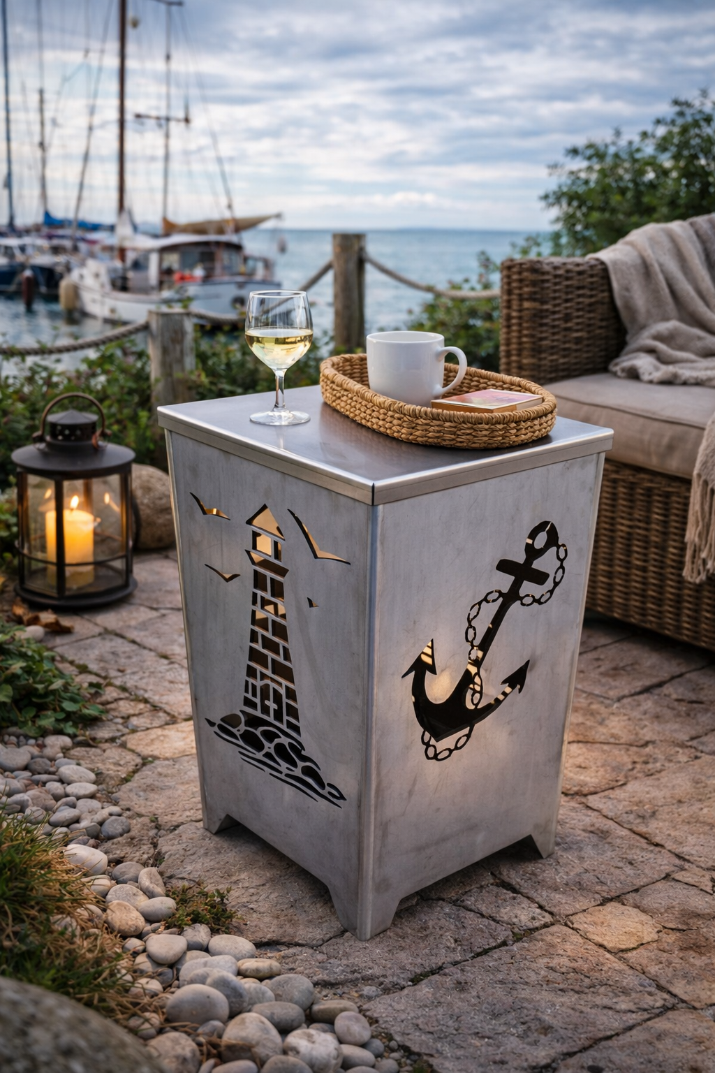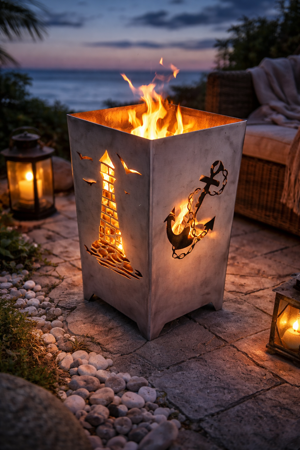 Feuerkorb Leuchtturm -Anker – Hol dir das Licht der Küste und die Wärme des Feuers in deinen Garten. |