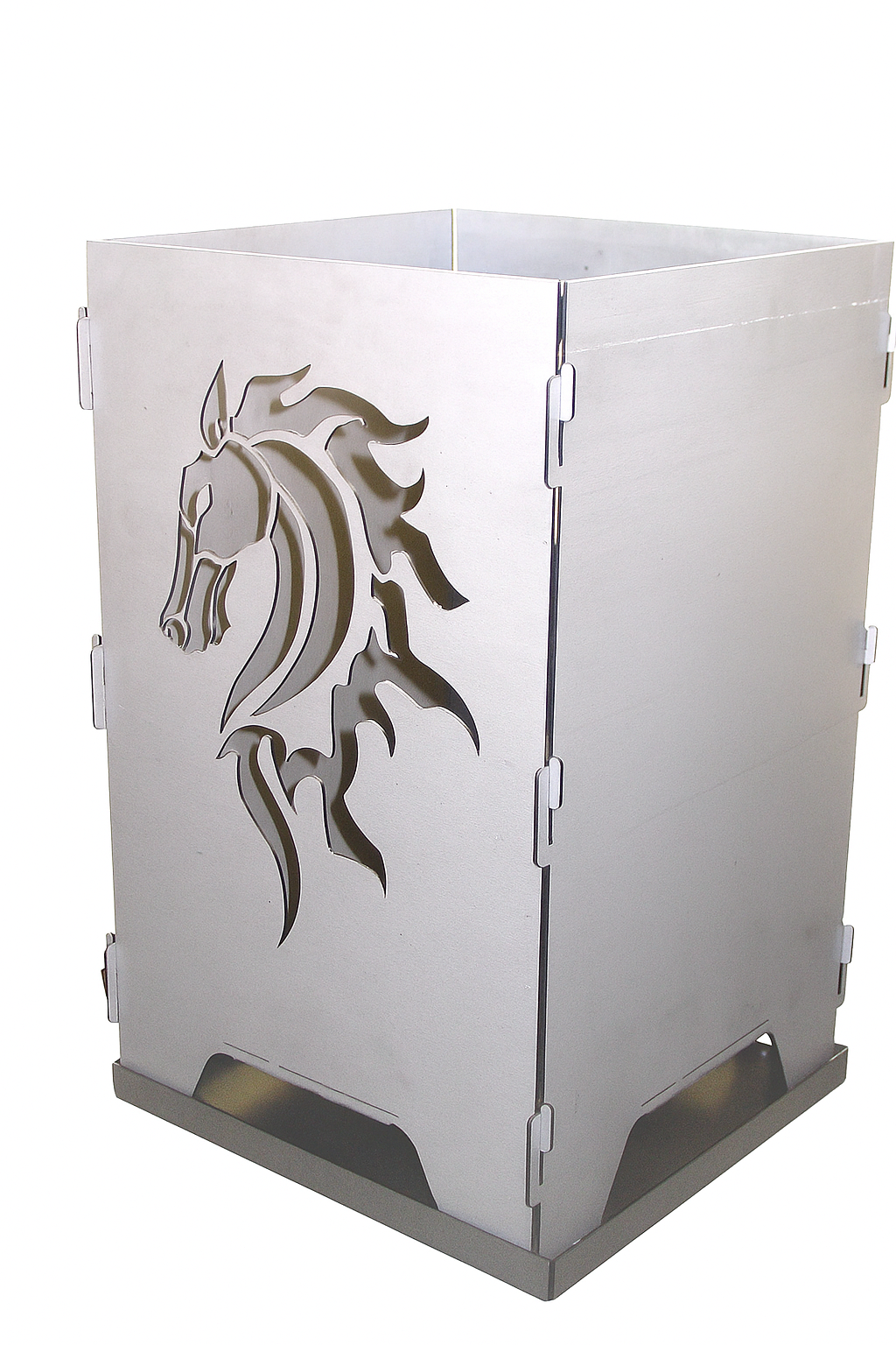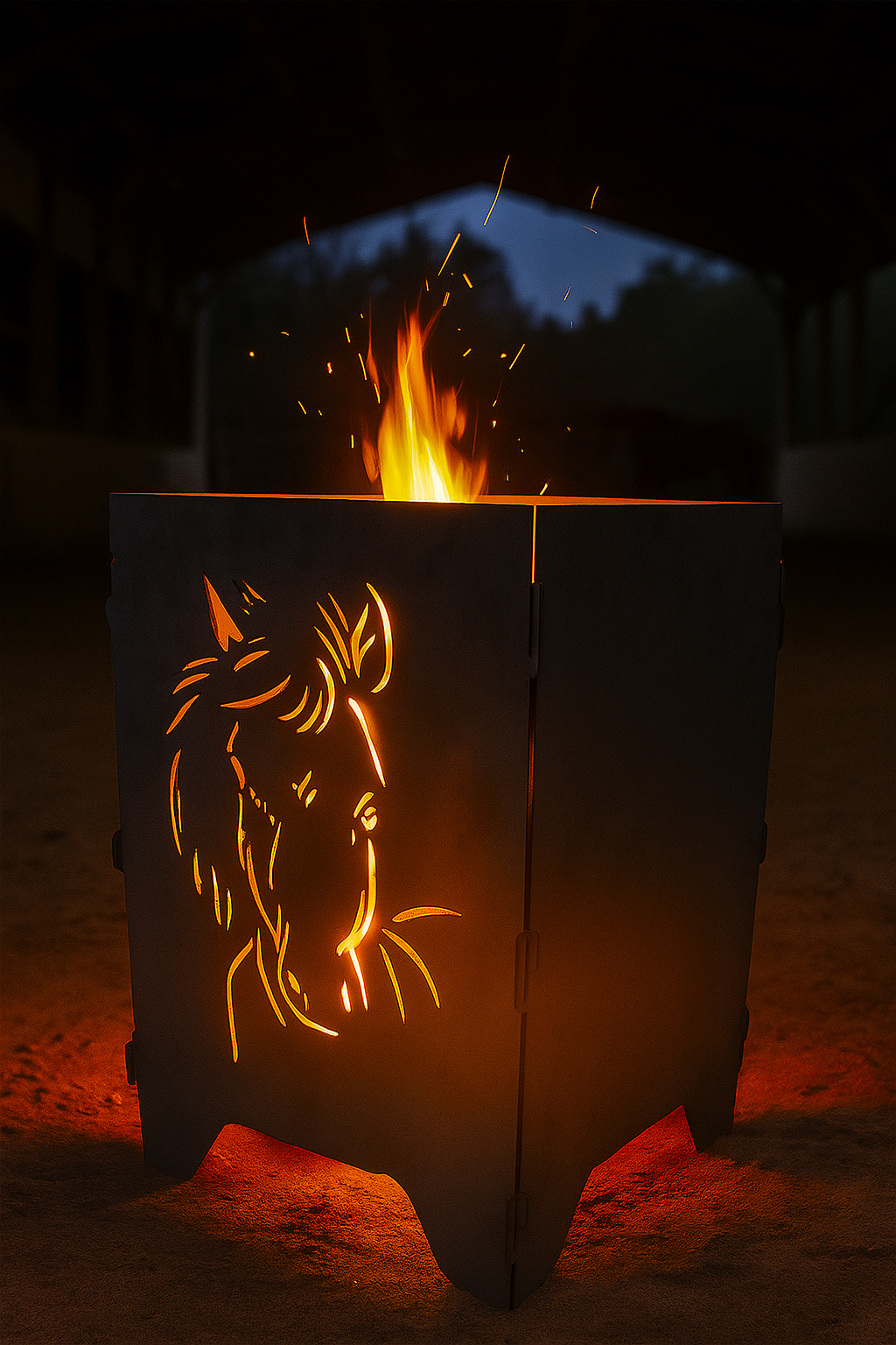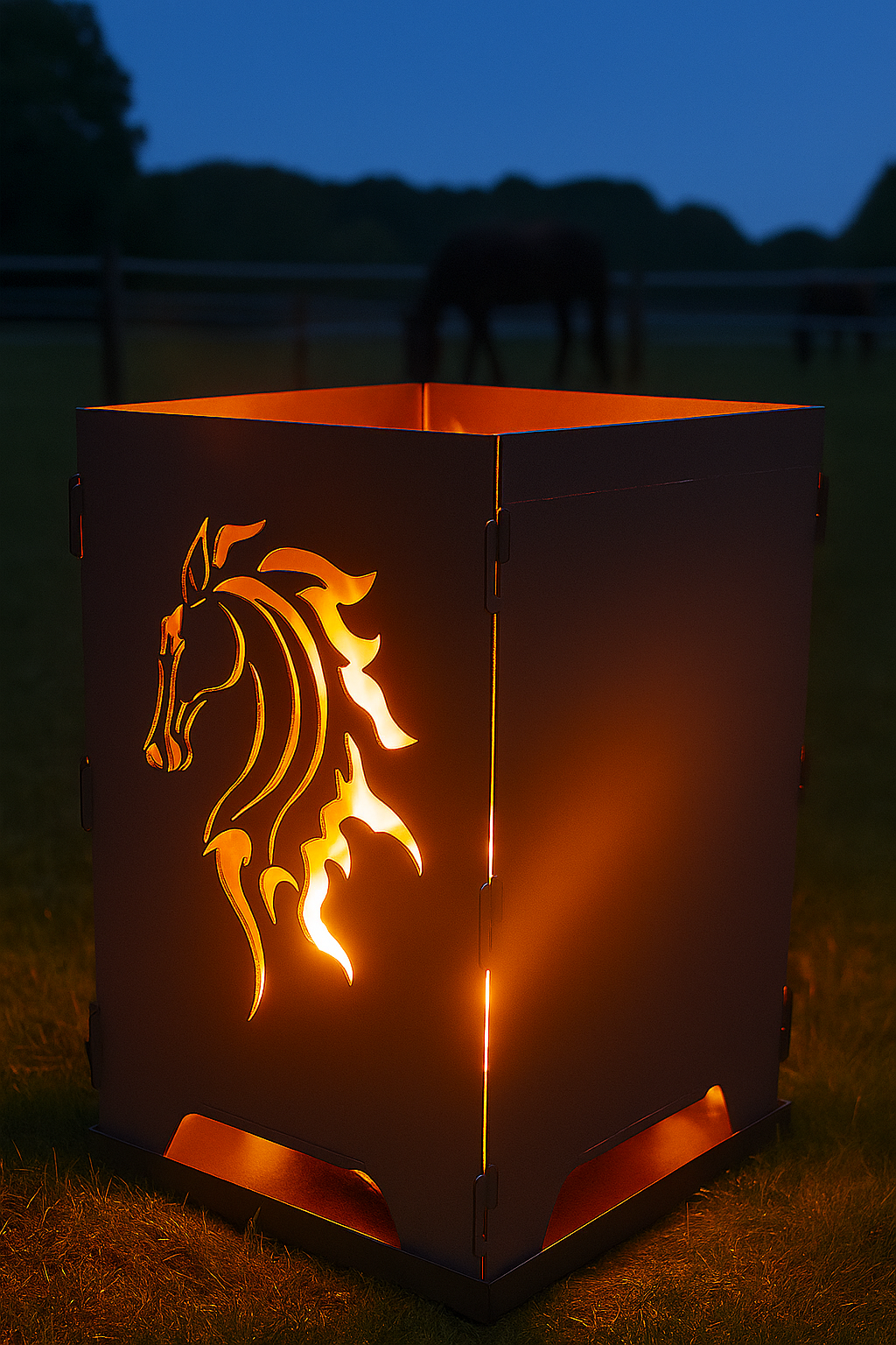 Erleben Sie pure Gemütlichkeit und leidenschaftliches Design mit unserem steckbaren Feuerkorb „Pferde“ – dem idealen Blickfang für Ihren Garten oder Ihre Terrasse. Der hochwertige Feuerkorb besteht aus 2 mm starkem Stahl und ist komplett steckbar, was ihn besonders stabil und zugleich leicht aufzubauen macht. Durch die präzise gelaserten Pferdemotive auf jeweils zwei Seiten entsteht bei Dunkelheit ein wunderschönes Licht- und Schattenspiel, das jede Feuerstelle in eine einzigartige Atmosphäre taucht. Mit einer Höhe von 50 cm und einer Grundfläche von 30 × 30 cm bietet dieser Feuerkorb genau die richtige Größe, um Wärme, Licht und stilvolle Optik harmonisch zu vereinen. Wählen Sie aus drei verschiedenen Pferde-Motiven Ihren Favoriten – jedes Design ein Unikat für echte Pferdefans!