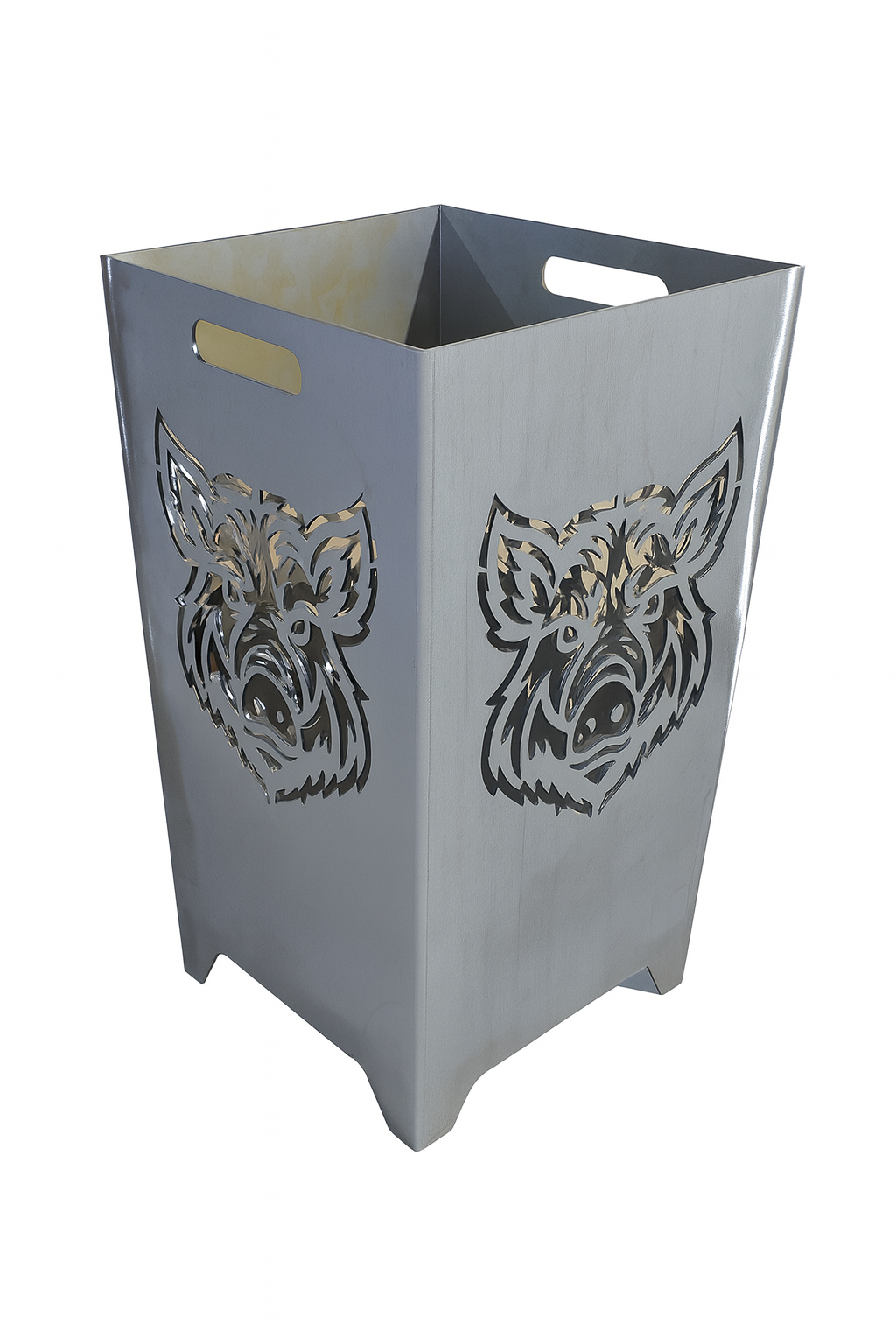 Dieser robuste Feuerkorb aus hochwertigem Metall ist ein echter Hingucker für Garten, Terrasse oder Hof. Das markante Wildsau-/Wildschweinkopf-Motiv ist präzise per Laser ausgeschnitten und sorgt bei brennendem Feuer für beeindruckende Licht- und Schattenspiele. Dank der zwei integrierten Griffmulden lässt sich der Feuerkorb bequem tragen und flexibel im Außenbereich platzieren. Die stabile Konstruktion gewährleistet eine sichere Nutzung und eine optimale Luftzirkulation für ein gleichmäßiges Abbrennen des Holzes. Ideal für Jäger, Naturfreunde und alle, die rustikales Outdoor-Design lieben. Ob Grillabend, Gartenparty oder gemütliches Feuer – dieser Feuerkorb bringt Atmosphäre und Charakter in jeden Außenbereich. |