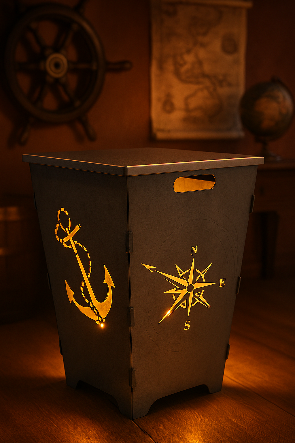 Feuerkorb „Windrose & Anker“ – Entfache das Feuer der Freiheit – mit dem maritimen Feuerkorb mit Griffmulden! |