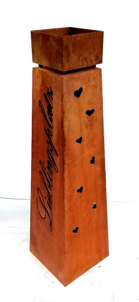 - Design: Konische Rostsäule mit Schriftzug Lieblingsplatz
