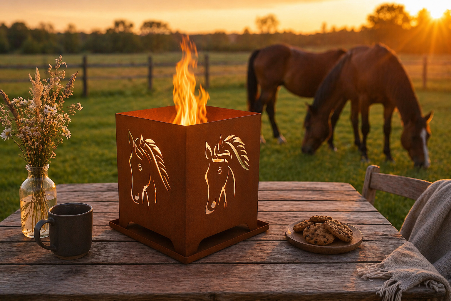 Edelrost Mini – Feuerkorb „Pferdekopf“ - Wo Feuer lodert und Freiheit lebt – der Feuerkorb für echte Pferdefreunde! |