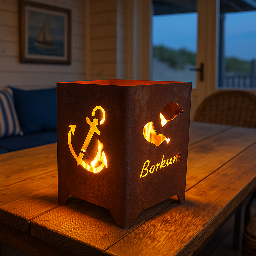 Edelrost Mini – Feuerkorb „Insel Borkum“ - Ein Stück Nordsee für Zuhause – dein Anker liegt auf Borkum! |