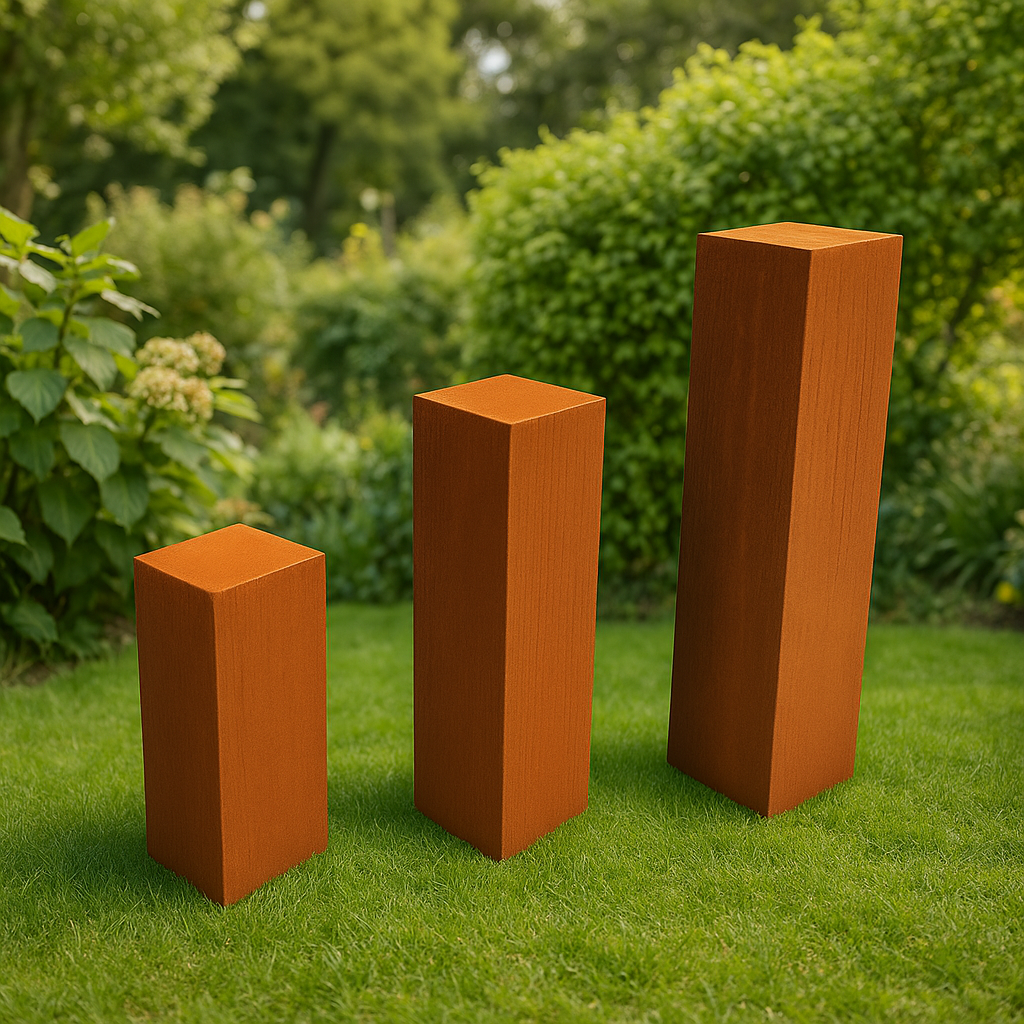 Metallsäule mit authentischer Rostoptik – moderne Deko in verschiedenen Größen für Haus und Garten.