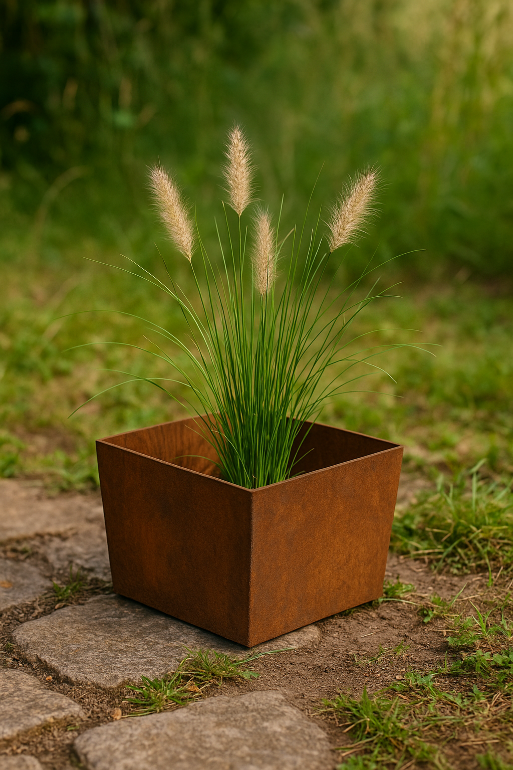 Pflanzschale „Kubus“ – Modernes, quadratisches Design aus Edelrost |